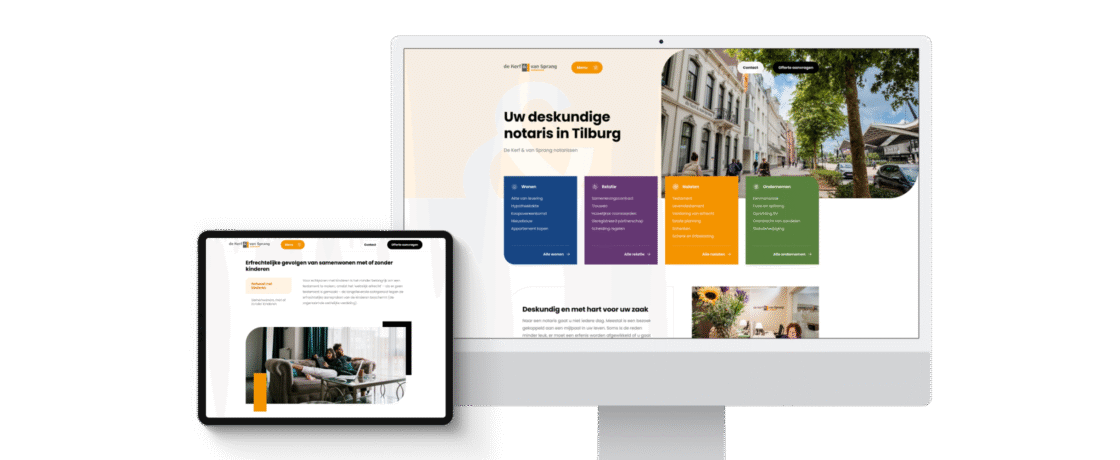 De oude website dateerde uit 2017 en was op vele vlakken verouderd. Met name de look & feel kwamen niet meer overeen met wat het notariskantoor anno 2025 uit wil stralen. Er was behoefte aan een modern, fris, persoonlijk en kleurrijker ontwerp, aangevuld met sprekende foto’s die laten zien dat het kantoor letterlijk en figuurlijk midden in Tilburg staat. We zorgden ervoor dat het ontwerp naadloos aansluit op de content.